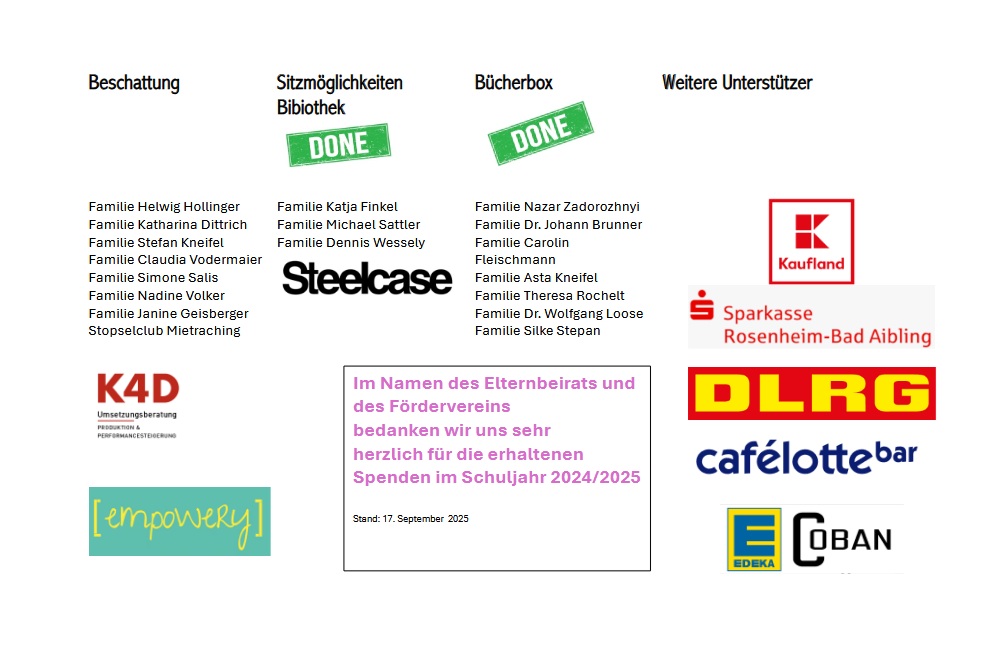 Dieses Geld, gemeinsam mit den Erlösen durch die Aktionen durch den Elternbeirat, kommt einzig und allein – und ohne Verwaltungsaufwände- den Kindern zugute.