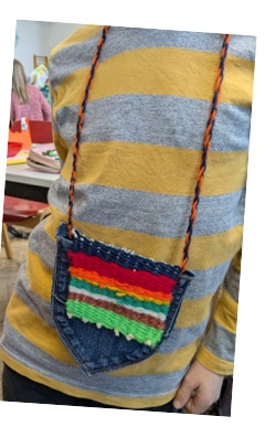 In der zweiten Klasse wurde es im Werkunterricht kreativ: Die Kinder gestalteten bunte Hippie-Täschchen aus alten Jeanshosen. Mit viel Fantasie schnitten, nähten und verzierten sie den Jeansstoff mit Bändern, Knöpfen und Stoffresten. So entstanden aus ausgedienten Hosen einzigartige Taschen. Die Schülerinnen und Schüler hatten große Freude am Arbeiten und lernten dabei, wie man aus alten Materialien durch Upcycling etwas Neues und Schönes schaffen kann.