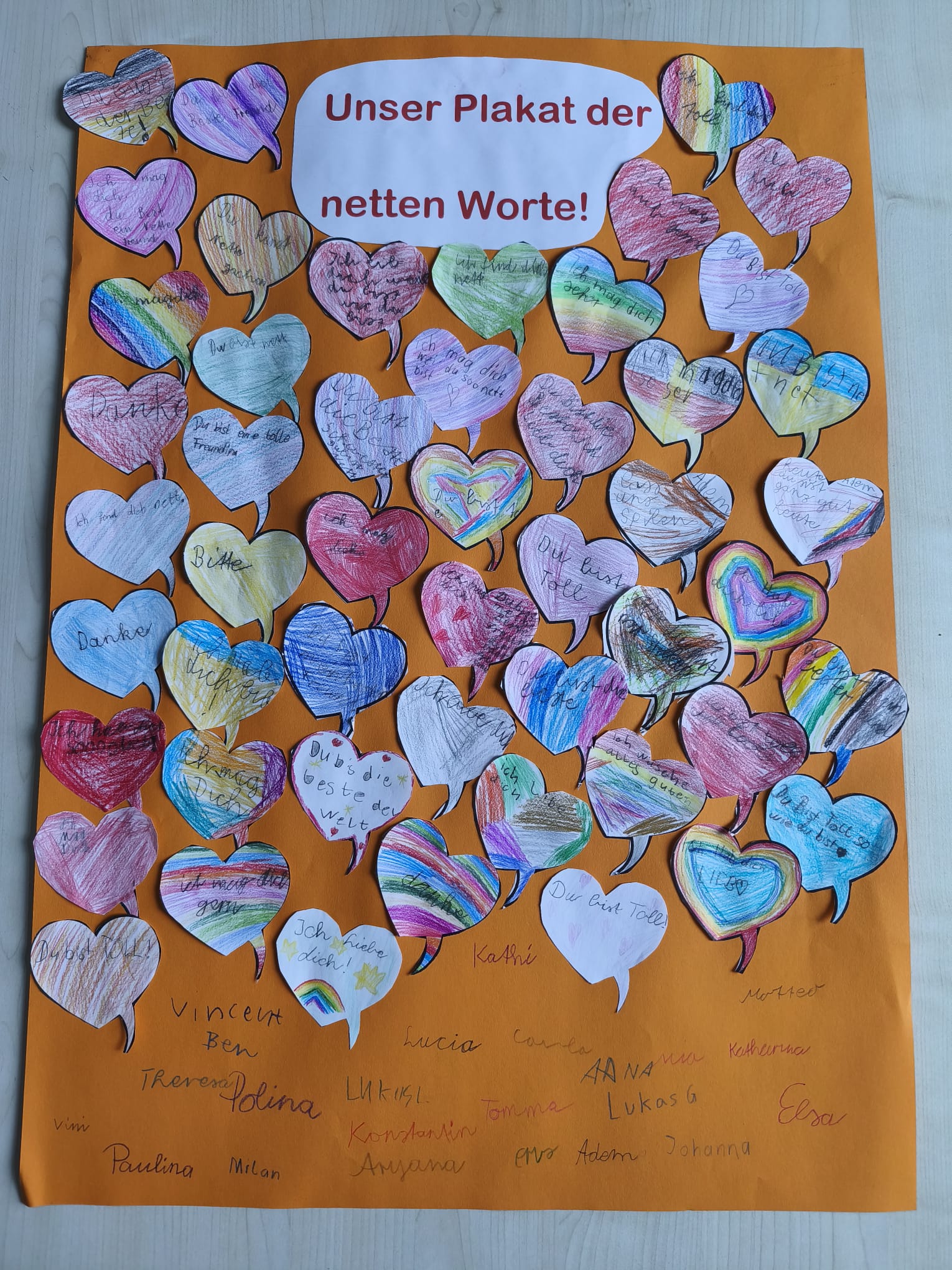 Zum Abschluss gestaltete jede Klasse ein eigenes Plakat der netten Worte, um zu zeigen, wie schön und stärkend freundliche Sprache sein kann.