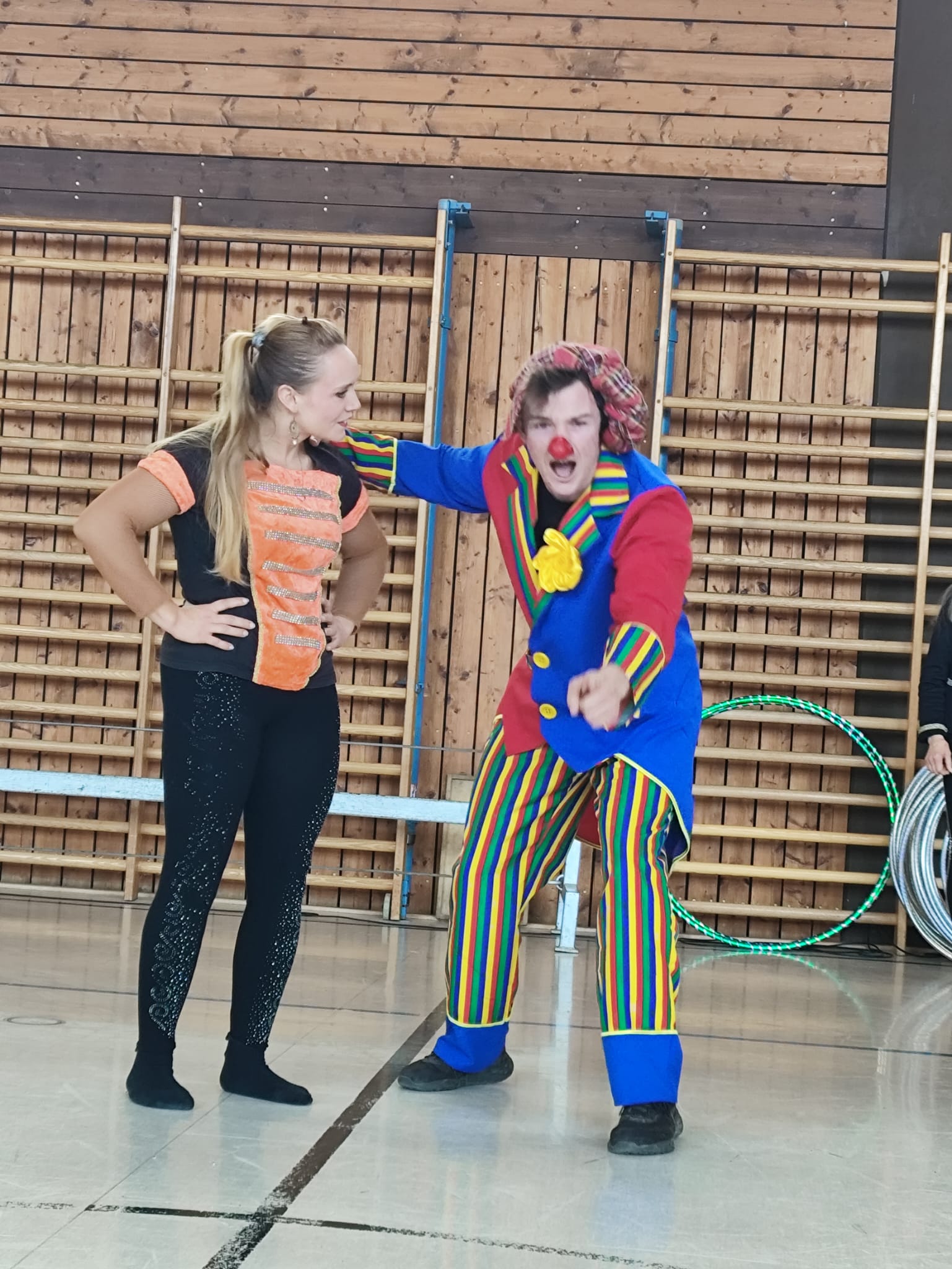 Am unsinnigen Donnerstag war der Familien Circus Jan Sperlich bei uns in der Turnhalle zu Gast. Eine Stunde lang bestaunten und bejubelten wir die Balancierkunststücke, Jonglage Tricks und Hula Hoop Aufführungen der Artisten. Zwischendurch wurden auch Schüler und Lehrer in die „Manege“ geholt, um einzelne Tricks selbst auszuprobieren. Sowohl die Kleinen als auch die Großen hatten dabei viel Spaß.