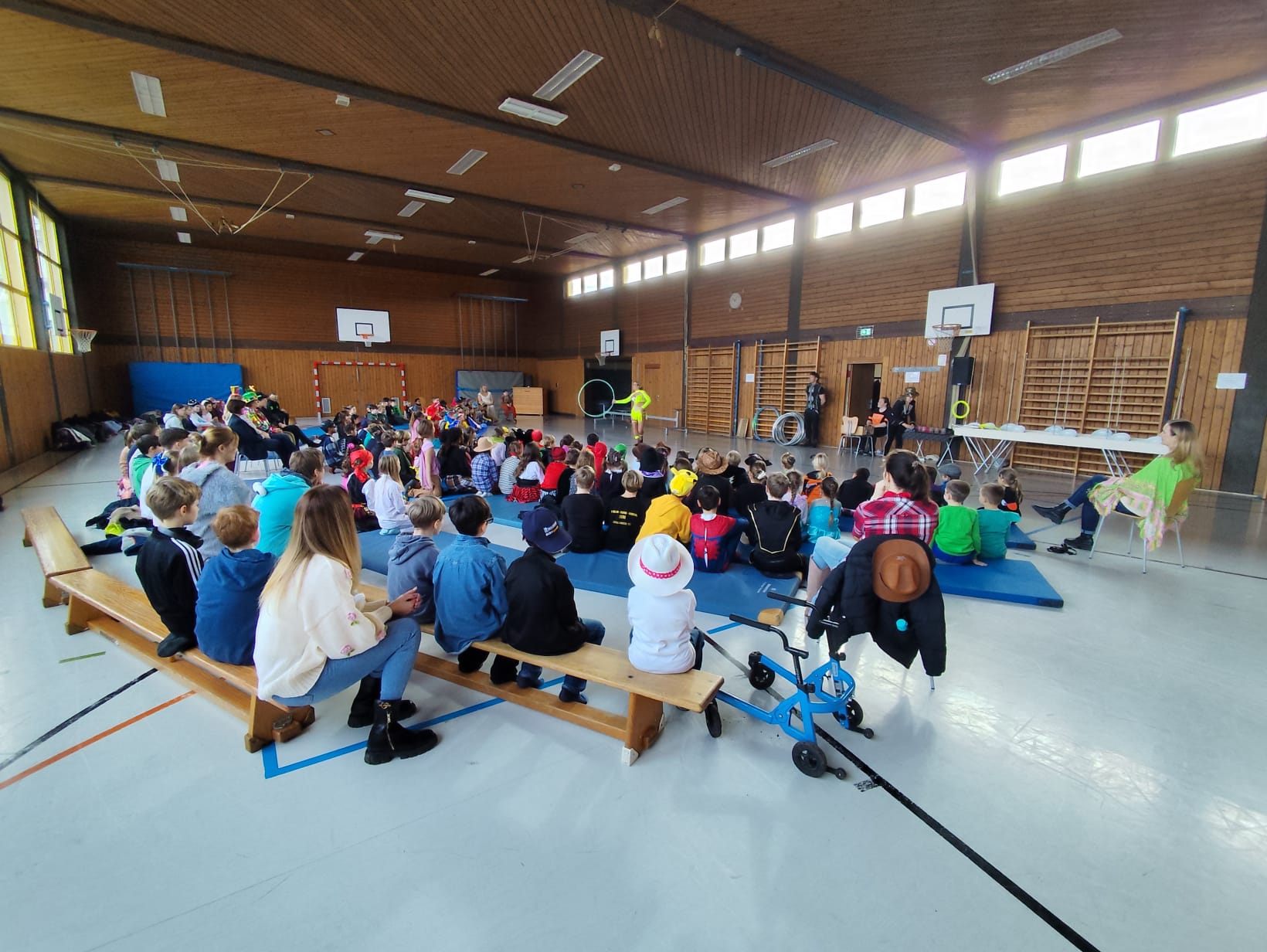 Auch im Februar trafen sich wieder alle Kinder der 3.&4.Klassen sowie der 1.&2.Klassen zu einer Schulversammlung in der Turnhalle.